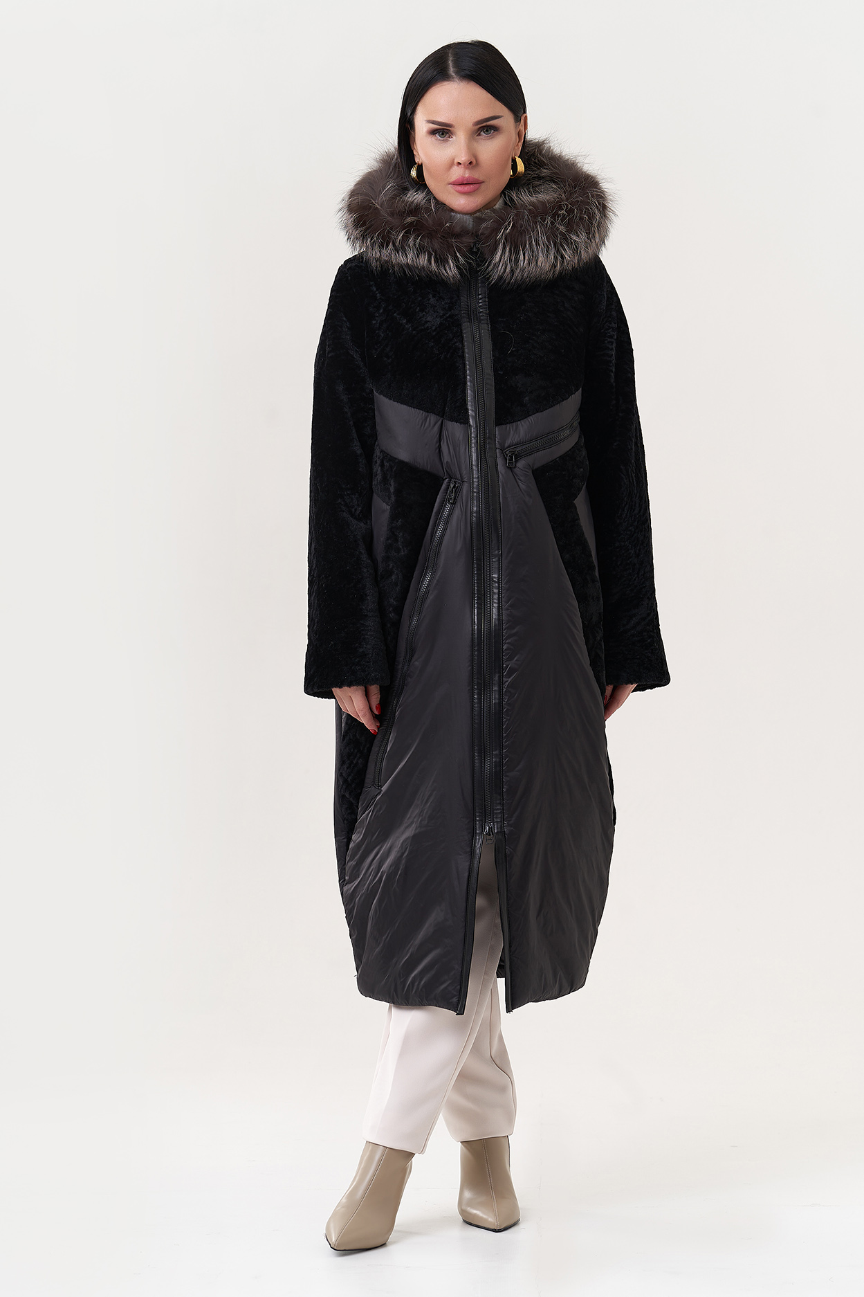 Вид ворота - капюшон, отделка - чернобурая лиса