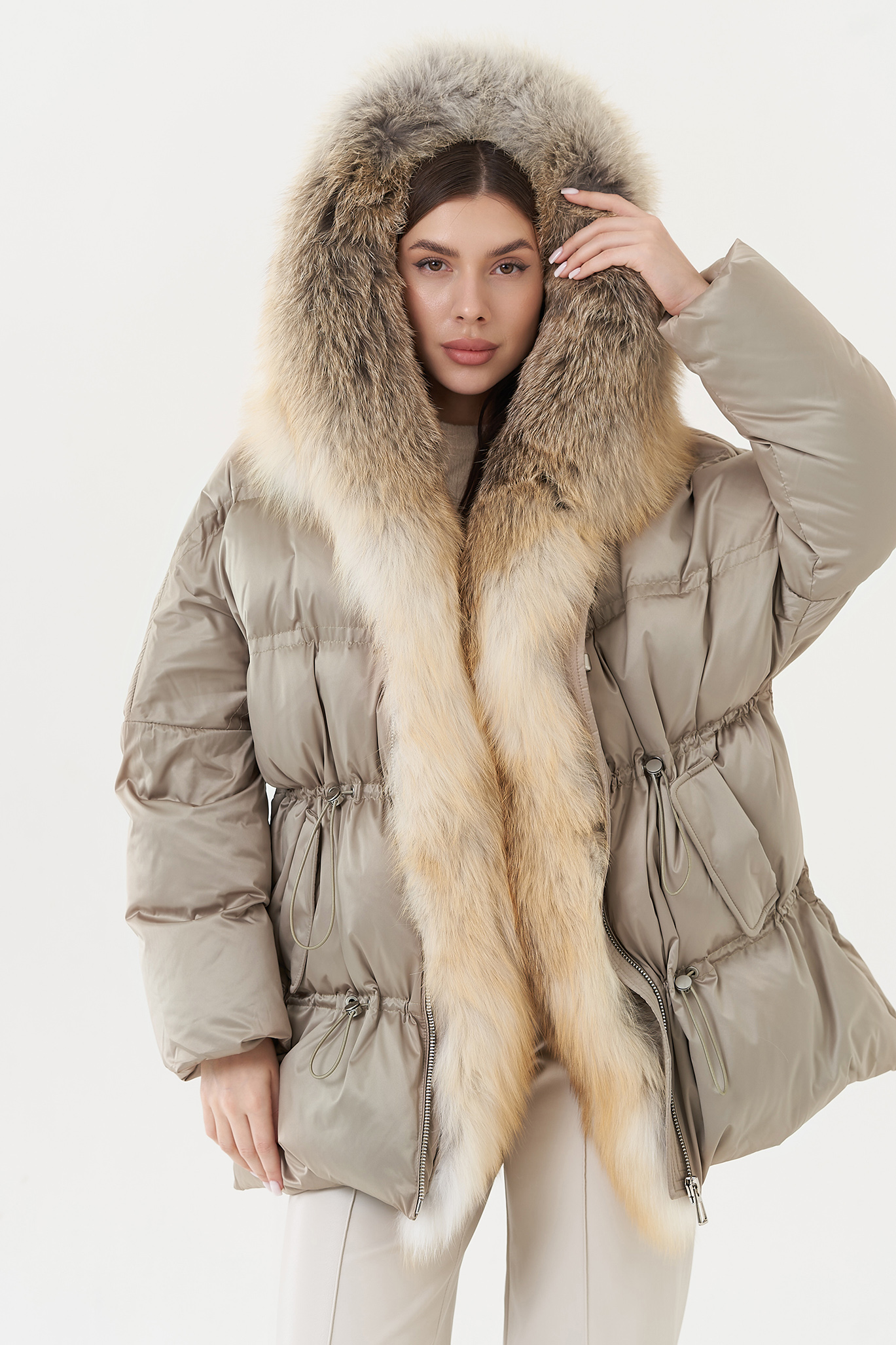 Крой воротника - капюшон, отделка лиса