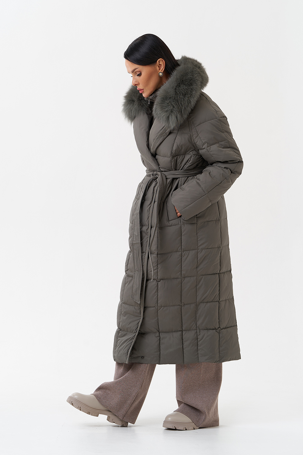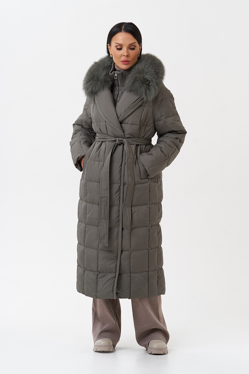 Крой воротника - английский воротник, съёмный, отделка натуральный мех