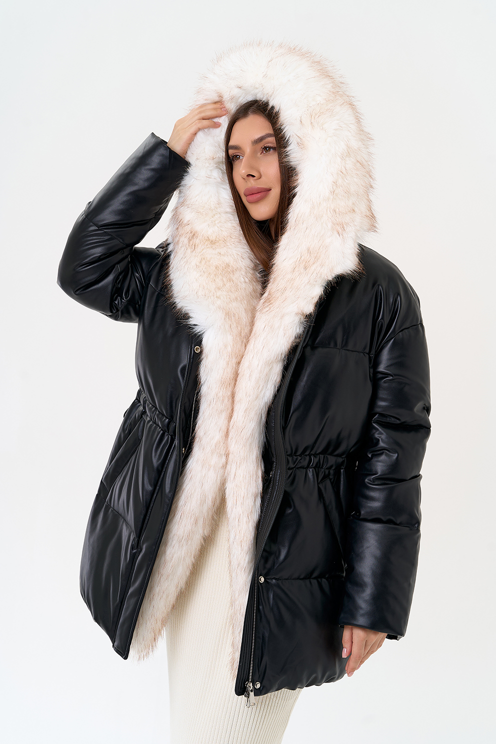 Отделка воротника - эко мех, цвет белый